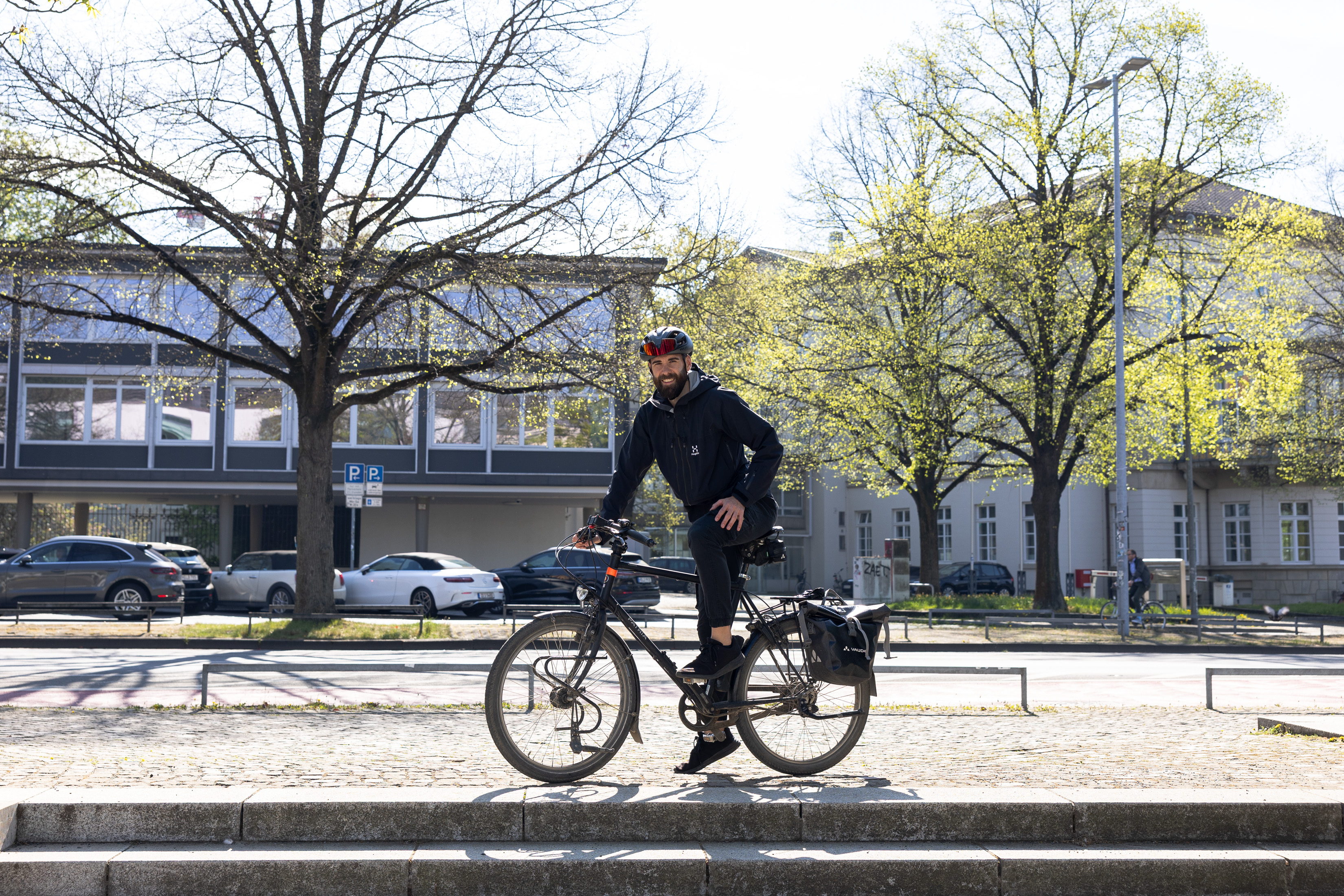 Felix, Projektmanager, ist führerscheinfrei unterwegs und fährt bei jedem Wetter – egal ob mit Trekking- oder Rennrad. „Radfahren ermöglicht es mir, zu entschleunigen und jeden Moment bewusst zu genießen. Egal bei welchem Wetter. Es ist einfach wichtig, rauszugehen und das Rad zu benutzen“, sagt Felix und fordert: „Ruhige, gut befahrbare Radwege sind ein Schlüssel dazu, dass wir öfter das Auto stehen lassen".