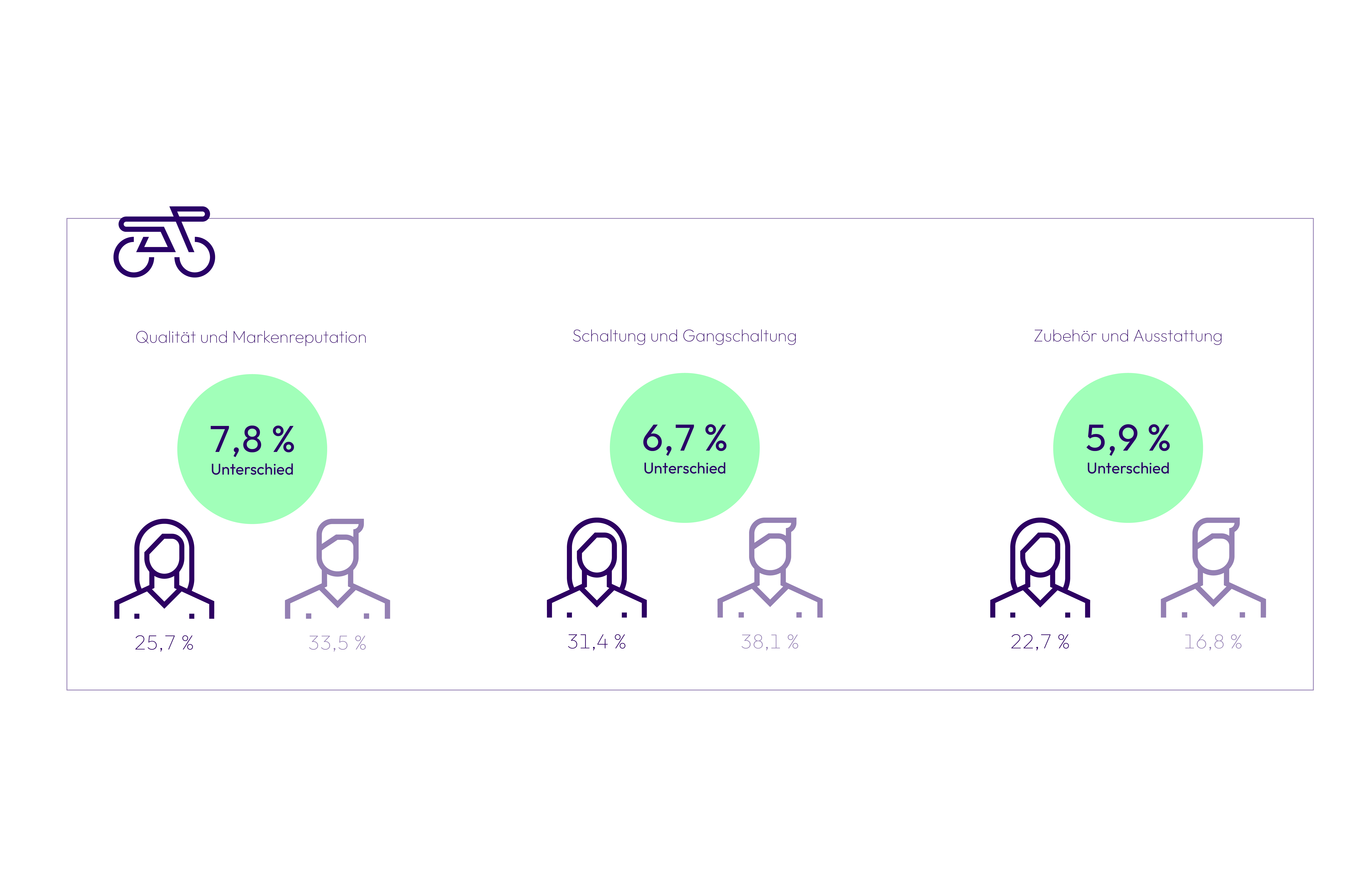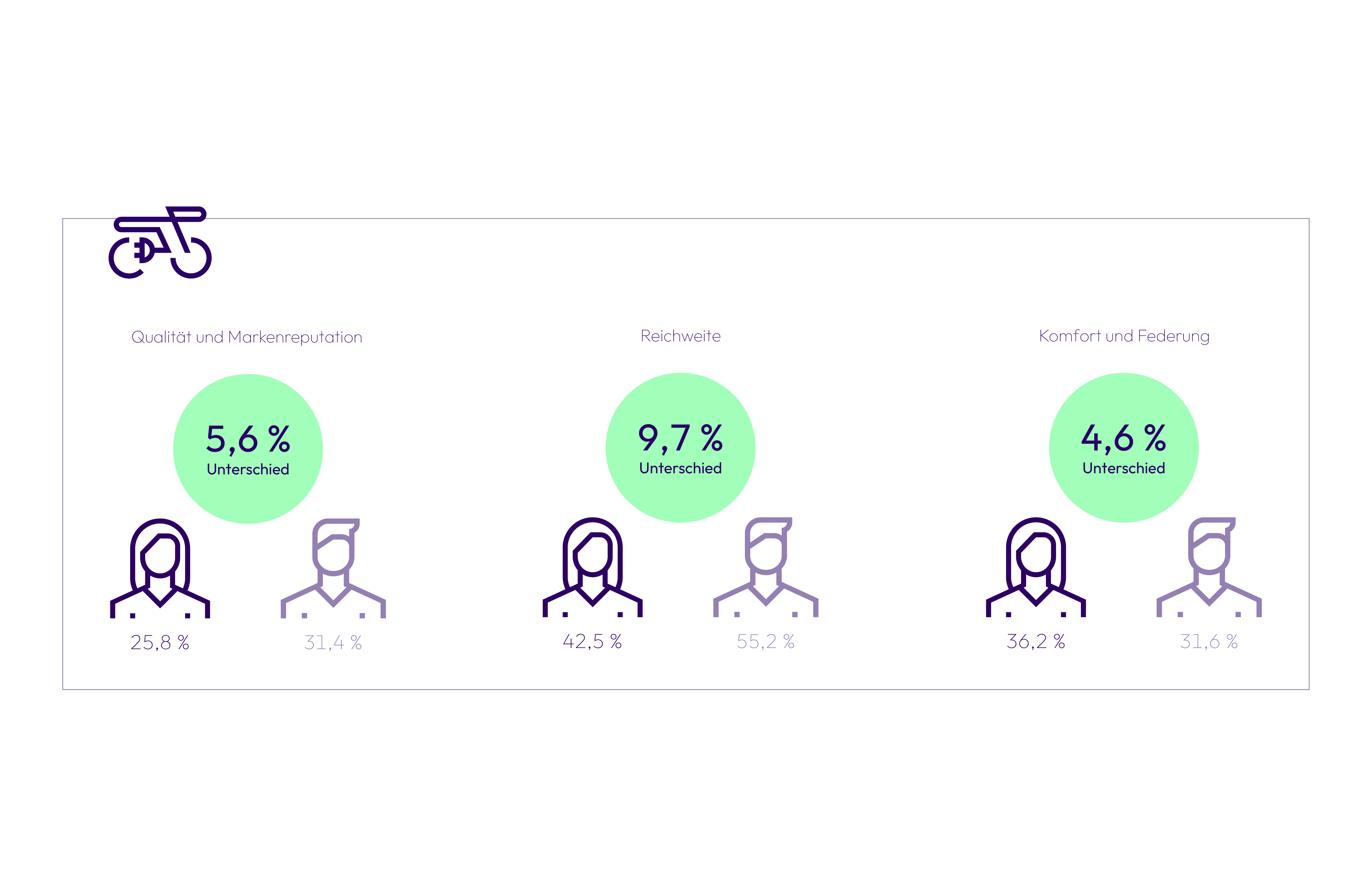 Auch bei Freizeitausfahrten (26,3 % vs. 34,3 %) und Radreisen (40,9 % der Frauen haben noch nie eine gemacht) zeigen sich Unterschiede. Dabei sprechen viele Gründe für das Rad: Bewegung, Natur, Nachhaltigkeit. Warum also bleibt das Potenzial vieler Frauen ungenutzt?
